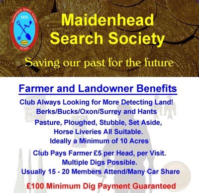 “Following a professional approach we decided to allow the Maidenhead Club to detect on our Farms. They fully respect all our stipulations and have reported a wide variety of fascinating finds, including five gold Treasure items. On the basis of this experience I am happy to give them a positive reference .”